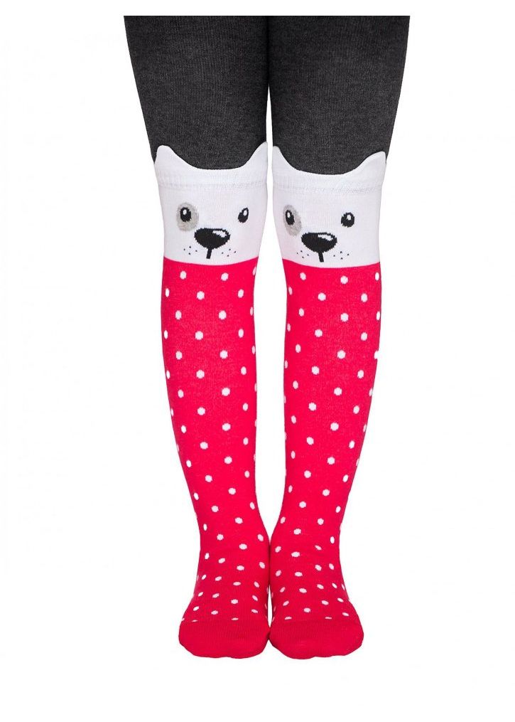 Детские Колготки TIP-TOP Ушки "Собачки" темно-серый малиновый