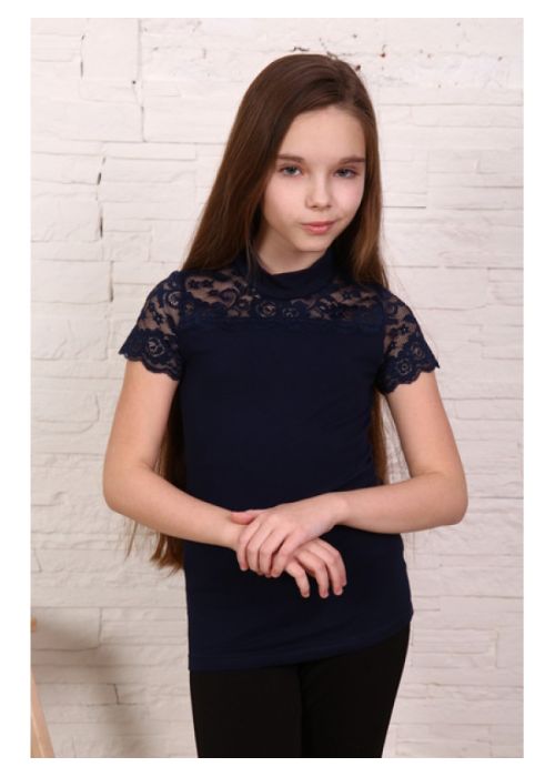 Джемпер классический однотонный с коротким рукавом.Стильный и современный классический джемпер для школьного возраста. Зона декольте и рукава декорированы кружевным орнаментом.Джемпер сшит из качественного трикотажа, используемый материал не теряет форму после многократных стирок, мягкий и приятный к телу, устойчив к износу.