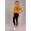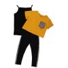 Костюм-тройка для девочки, состоит из Кулирки, в состав которой входит 92% хлопка и 8% лайкры. В комплект входит удлиненная однотонная майка черного цвета на тонких бретельках, укороченная футболка песочного оттенка, и брюки черного цвета. На футболке расположен грудной карман, на брюках вставки по бокам. Карман и вставки имеют леопардовый принт.