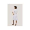 Халат женский полуприлегающего силуэта, длиной до середины колена. Застежка центрально - бортовая на металлических кнопках в тон отделки. Полочка и спинка имеют рельефные швы, что визуально сделает ваш образ более стройным. Боковая часть полочки с накладными карманами оригинальной формы.