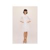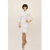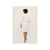 Халат женский "Веста-ВЭЙ" полуприлегающего силуэта из легкой и дышащей ткани длиной выше колена. Застежка центрально-бортовая на металлические кнопки, расположенные парами в цвет отделочного канта. Карманы: накладной нагрудный карман фигурной формы и 2 накладных кармана на бедрах, вход в карман расположен под углом к рельефу. Воротник стойка и манжеты имеют отделку в виде цветного канта. Рукав длиной 3/4. На левом нагрудном кармане выполнена вышивка в тон отделки. Халат с хлястиком из боковых швов, застегивающимся на спинке на кнопки для комфортной носки. Ткань пластична и легка в уходе, обеспечивает комфорт в течение дня.