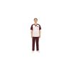 Костюм мужской медицинский, состоящий из куртки и брюк. выполненный из гироскопичной,дышащей смесовой ткани. Куртка прямого силуэта длиной до бедер. Горловина V-образная, спереди обработана притачной планкой внахлест, на спинке - с обтачкой. Перед с накладным двойным нагрудным карманом фигурной формы. Нижний карман меньшего размера и расположен чуть выше верхнего. Рукав реглан короткий. Брюки прямого силуэта. Передние половинки брюк с накладными карманами фигурной формы с косой линией входа. Левый карман двойной. Задние половинки брюк с накладными карманами фигурной формы. Верхний срез брюк обработан притачным поясоми со шнурком.