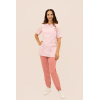 Элегантный и нежный медицинский костюм для женщин БРИДЖИТ. Он сшит из качественной смесовой ткани (50% хлопок / 46% полиэстр / 2% спандекс / 150г) со стрейч-эффектом, что обеспечивает комфорт при ежедневной носке. Блузка полуприлегающего силуэта, длиной чуть ниже уровня бедер. Асимметричный крой и треугольный вырез горловины смотрятся очень эффектно. Рукав короткий. Спинка присобрана на кулиску по линии талии. Небольшие карманы и декоративные детали не только красивы, но и удобны: служат для размещения бэйджа и других мелочей, необходимых для тех, кто носит медицинские костюмы. Слегка зауженные брюки украшены отделочной строчкой в тон ткани. Верхний срез обработан притачным поясом с эластичной тесьмой и регулируется шнурком. Низ брюк присобран на резинку.