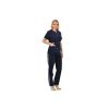 Костюм женский состоит из куртки и брюк. Куртка с коротким рукавом, без ворота,цветные вставки на груди и на рукавах, в области талии вшит тонкий поясок, завязывается на спине. Два больших и внутри еще два поменьше кармана.