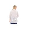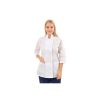 Женский поварской китель, полуприлегающего силуэта, длиной до линии бедер.С двубортной симметричной застежкой.Воротник-стойка с округлыми краями.Рукав втачной, короткий, с обработкой низа в подгибку.Т