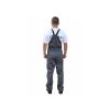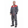 Костюм рабочий мужской для защиты от ОПЗ и МВ, состоит из куртки и полукомбинезона. Цвет серый с красной отделкой.