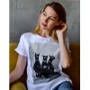 Футболка женская. Выполнена из хлопка с добавлением лайкры, декорирована принтом "Доберманы".