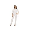 Куртка женская полуприлегающего силуэта длиной до бедер с разрезами в боковых швах. Застежка центрально боровая супатная на пуговицах. Горловина без воротника округлой формы, обработана с планкой. Конец планки горловины треугольной формы застегивается на две декоративные кнопки разного диаметра. Полочка и спинка с рельефными швами, что сделает вашу фигуру визуально стройнее. Рукав втачной, длиной ?. Низ рукава обработан манжетой. Куртка с хлястиком с треугольными концами. Хлястик фиксируется в шлевках в рельефных швах полочек на 2 пары декоративных кнопок разного диаметра, и регулируется на спине с помощью трех декоративных кнопок, для удобства посадки по фигуре.