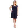 Ночная сорочка свободного силуэта из вискозного трикотажного полотна с кружевом длинной выше уровня колена. Верхняя часть сорочки выполнена из кружевного трикотажного полотна как на полочке, так и на спинке. Также кружевное полотно присутствует в боковых вставках изделия. Рукав-крылышко. Вырез горловины О-образный. На полочке имеется застёжка-планка на петли, пуговицы.