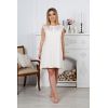 Ночная сорочка свободного силуэта из вискозного трикотажного полотна с кружевом длинной выше уровня колена.. Верхняя часть сорочки выполнена из кружевного трикотажного полотна как на полочке, так и на спинке. Также кружевное полотно присутствует в боковых вставках изделия. Рукав-крылышко. Вырез горловины О-образный. На полочке имеется застёжка-планка на петли, пуговицы.