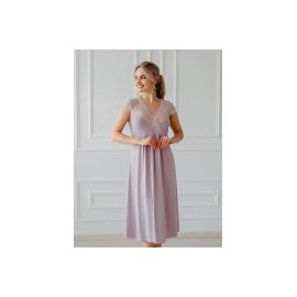 Удлиненная сорочка прямого силуэта с коротким рукавом. Верх лицевой стороны обшит кружевом нежного оттенка, что придает более красивый и интересный вид изделию.