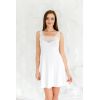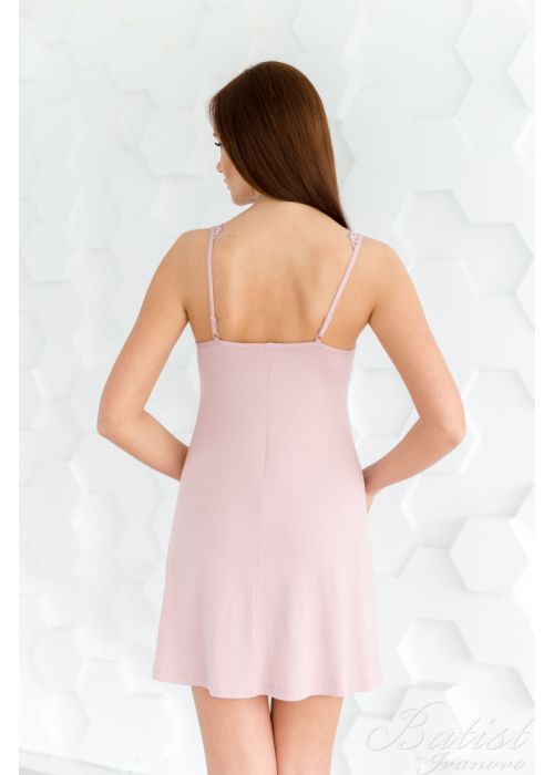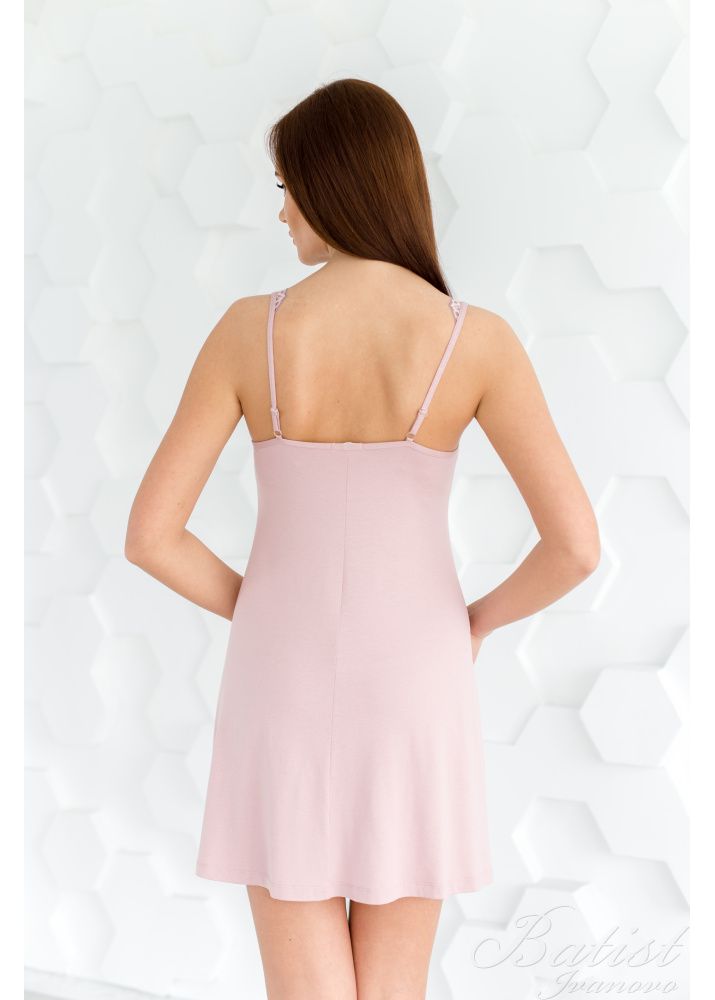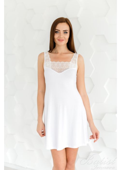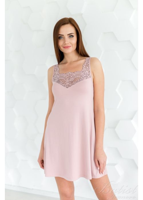Укороченная женская сорочка без рукава, в состав которой входит вискоза и эластан, будет отличной и комфортной вещью для домашнего времяпровождения. Сорочка имеет приталенный силует, что подчеркивает фигуру и делает домашний образ изящным и привлекательным. Верх изделия с лицевой стороны общит декоративным кружевным орнаментом и имеет широкие лямки, по спине изделия имеются тонкие регулируемые лямки.