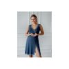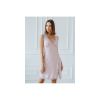Сорочка прилегающего силуэта, длиной до колена, отрезная под грудью. На спинке, в области лопаток и спереди, над левым коленом - разрезы. Горловина, проймы, разрезы и низ изделия обработаны эластичным кружевом. Без рукава.