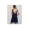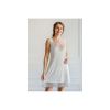 Сорочка прилагающего силуэта, длиной до середины бедра, на широких бретелях. Спинка со швом. Без рукава, проймы окантованы. Верхние срезы переда и спинки, а также низ сорочки обработаны кружевом.