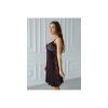 Сорочка женская ночная из вискозы с кружевом полуприлегающего силуэта длиной до середины бедра, на узких, регулируемых бретелях. Кокетка переда двойная: нижняя из трикотажного полотна, верхняя из эластичного кружева. Лиф и область боковых швов отделаны широким эластичным кружевом.
