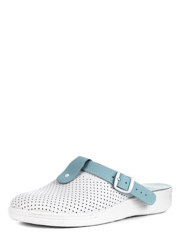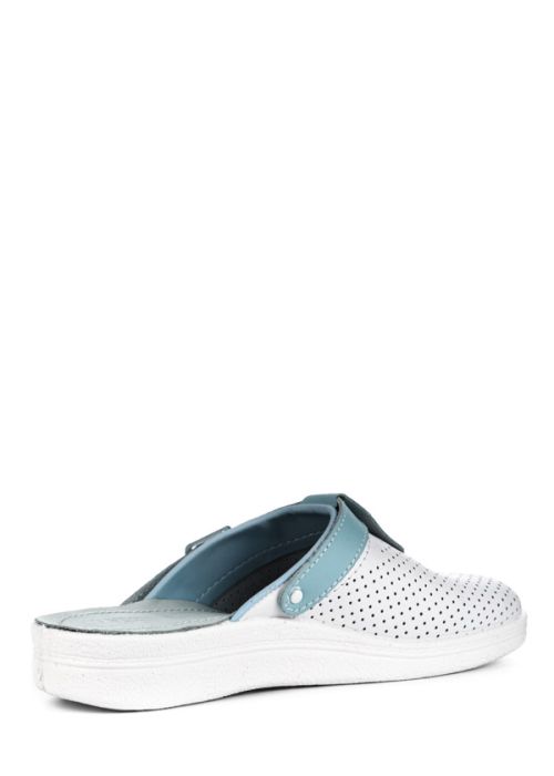 Женские Сабо ЭКО кожа белые с голубым кантом