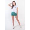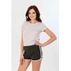 Женские трикотажные шорты, короткие. Пояс на резинке. Низ и боковой шов имеют отделку яркой окантовкой.