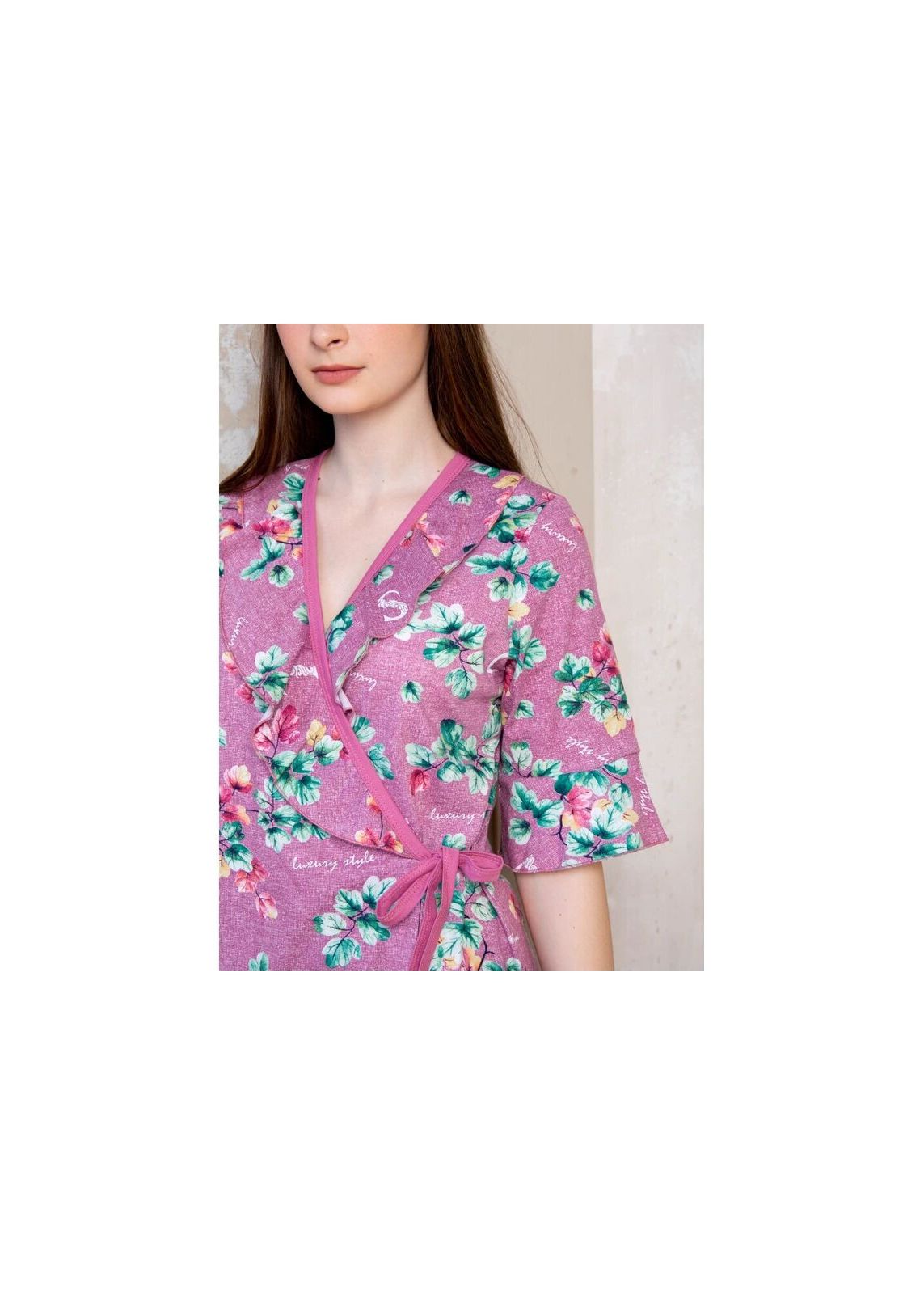 Халат женский домашний,рукав 1/2,запашной,средней длины.
