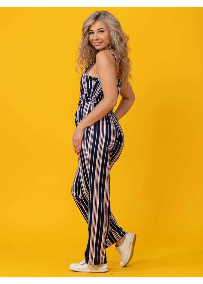 Комбинезон из 100% хлопка на бретелях, с V-образной горловиной, перед на запах, брюки прямые со сладками по линии талии. Отлично подойдет на жаркое лето, в нем вы не останетесь не замеченной. Выполнен в трендовой расцветке весна-лето 2022 года.