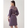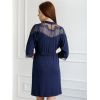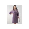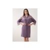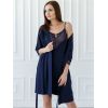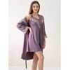 Пеньюар состоит из халата и сорочки. Халат прямого силуэта, на запах с поясом, длиной до середины колена. Рукав -кимоно, длиною до локтя. Халат в области плеча и низ рукава декорирован кружевом. Сорочка прилегающего силуэта силуэта, длиной до колена, без рукава. По переду и спинке сорочка декорирована кружевом. Горловина полочки оформлена пикантной капелькой и декорирована металлическим элементом. Материал: трикотажное полотно - вискоза, кружево. Волокнистый состав - 92% вискоза, 8% эластан.