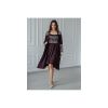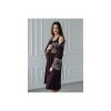 Элегантный женский комплект для дома из вискозы с эластичным кружевом. Состоит из халата и сорочки. Халат запашной, длиною до колена, фиксируется поясом. Верхняя часть полочки, рукавов и спинки декорированы кружевом. Втачные рукава эффектно украшены кружевом по низу.Сорочка прилегающего силуэта, длиной выше колена без рукавов на широких бретелях. Лиф сорочки декорирован кружевом.