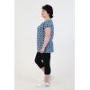 Костюм женский из комбинированного трикотажного полотна. Кофта полуприлегающего силуэта длинной чуть ниже уровня бёдер. На полочке присутствует застёжка - планка на петли – пуговицы. Вырез горловины О-образный. Плечевой пояс спущенный. В боковых швах присутствуют карманы. Бриджи прилегающего силуэта длиной ниже уровня колена. Верхний срез обработан резинкой.