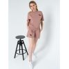 Стильный женский костюм с шортами. Выполнен из очень приятной и мягкой, но износостойкой и гипоаллергенной ткани (футер 2-х нитка). Асимметричная футболка с коротким втачным рукавом и принтом "Собака". Шорты с двумя карманами, пояс - широкая резинка.