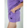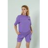 Стильный женский костюм с шортами. Выполнен из очень приятной и мягкой, но износостойкой и гипоаллергенной (футер 2-х нитка). Асимметричная футболка с коротким втачным рукавом и принтом "Собака". Шорты с двумя карманами, пояс - широкая резинка.