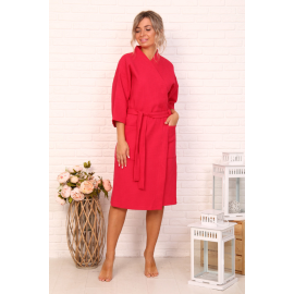 Женский вафельный халат кимоно//универсальный Красный
